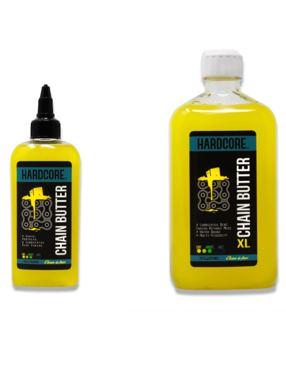Chain Butter is suited for most riding climates (dry-moist). Hardcore’s cutting edge lubrication technology is multi-viscosity, plates metal surfaces, shedding grit, and lowering surface friction. Chain Butter wont build-up that nasty, pasty, filthy, and greasy gunk like most lubes. When the time comes to clean your ride, Chain Butter rinses off and makes reapplication a cinch. Chain Butter is formulated to protect your bike, the environment, and the ears of your riding buddies.