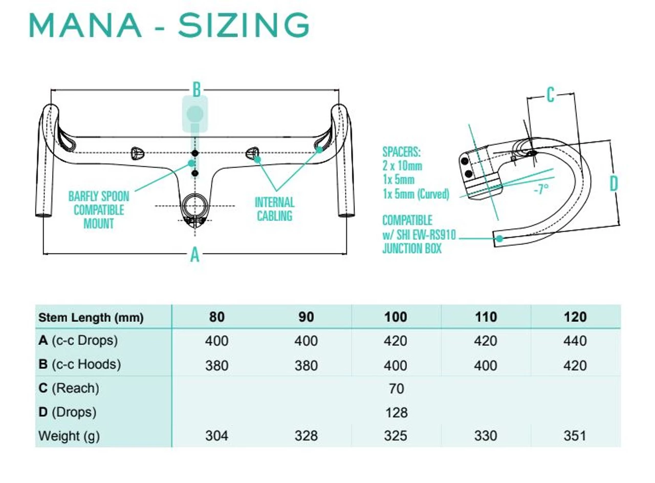 The Mana is available in 5 size combinations so that you can dial in your desired position with effective stem lengths from 80-120mm and widths from 400-440mm.