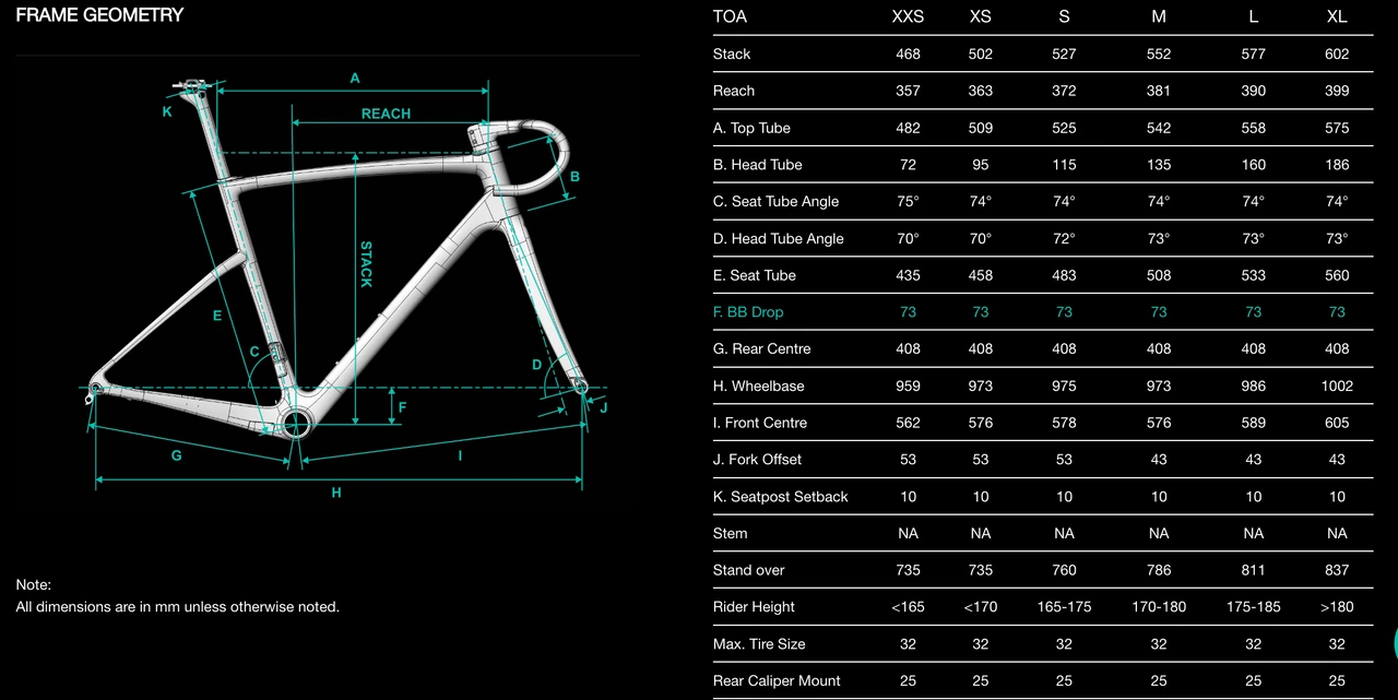 - Tire Clearance: 30mm (ISO) & 32mm Practical