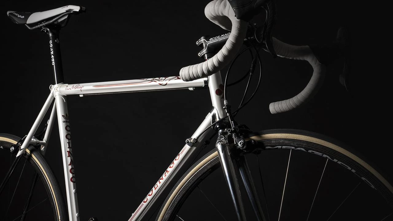 The timeless Colnago bicycle, a jewel of timeless style with its cold-drawn stellar steel tubes and the unmistakable Precisa fork, is accompanied in this project by the reworking of two different types of Adidas shoes.