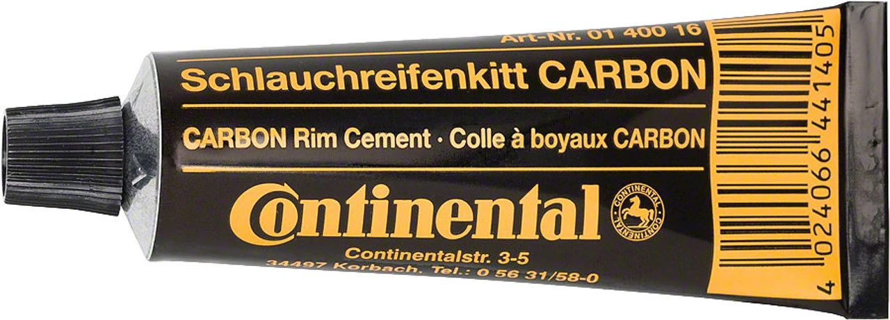 Continental Carbon Rim Cement adheres to carbon fiber rims better than standard tire glue.
