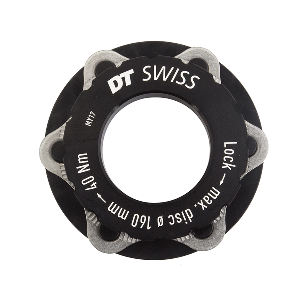 DT-Swiss CenterLock adaptor. Allows 6-bolt rotors to be used on CenterLock hubs.