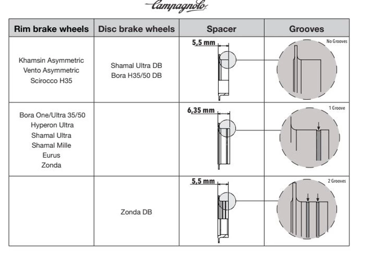 Wheel compatibility: Fulcrum / Campagnolo with 17 mm axle this covers all Bora, Shamal, Eurus and WTOÂ