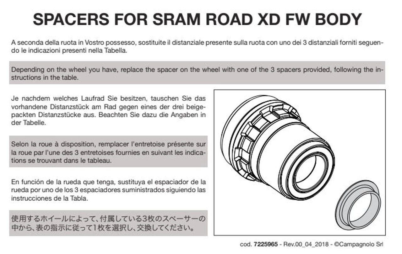 Fulcrum and Campagnolo Freehub for XDR 12 speed with spacer for 11spd.Â