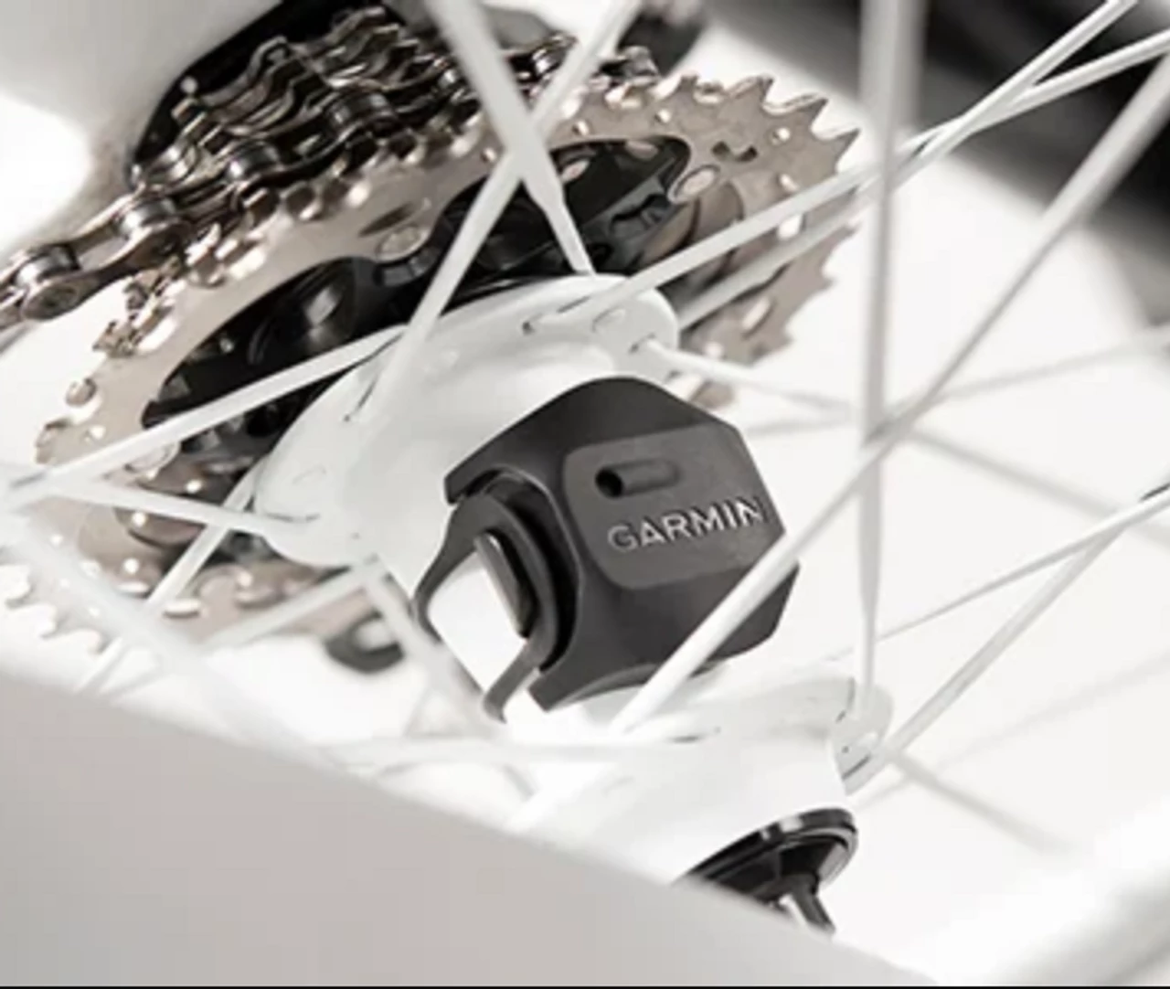 The speed sensor 2 attaches to the hub of either wheel. You can set up wheel size in the Garmin Connect™ online community or self-calibrate with an Edge® cycling computer or compatible Garmin device. Once set up, you’ll get accurate speed and distance at all times — even without a head unit.