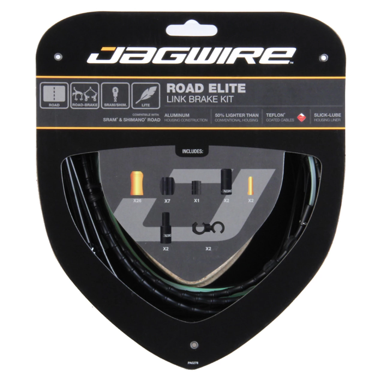 Jagwire Road Elite Link Brake Cable Kit sold as a set for front and rear brake with full housing and two cables.Â
