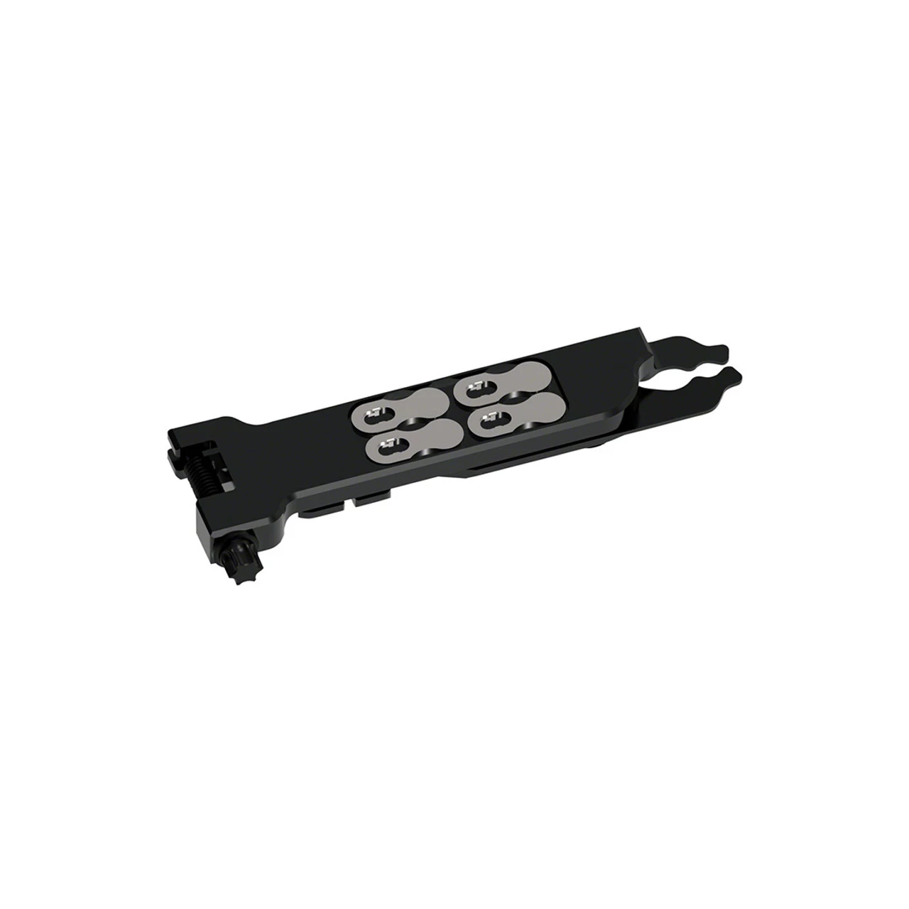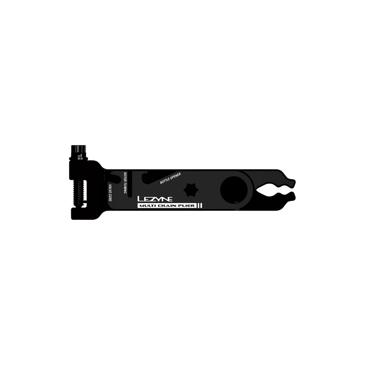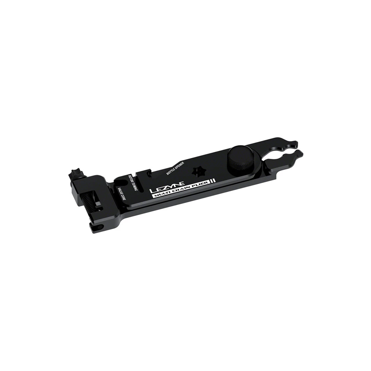 Professional grade, versatile bike chain multi tool engineered for a variety of road or trailside repairs. The Multi Chain Pliers are constructed from machined aluminum and feature an integrated quick-link tool, chain breaker, valve core tool, bottle opener, rotor aligner and magnetic holders for up to two spare quick links. Its slim design allows for maximum portability, and it’s engineered for long-lasting use. It also features an anodized finish and a hardened steel chain breaker pin. Mountain bikers, road cyclists and gravel grinders will all find its versatility highly useful, whether in the workshop or out on the road or trail.