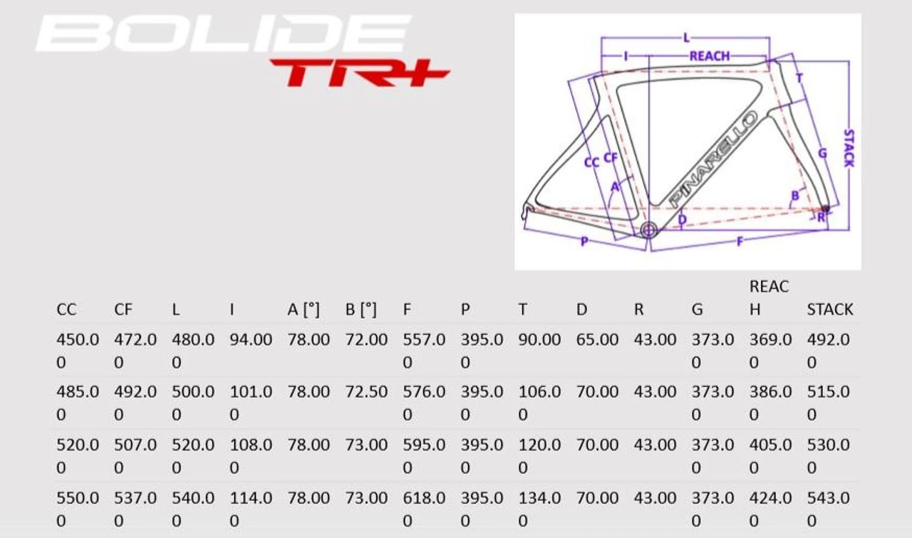 BOLIDE TR+ FRAMESET SPECIFICATIONS