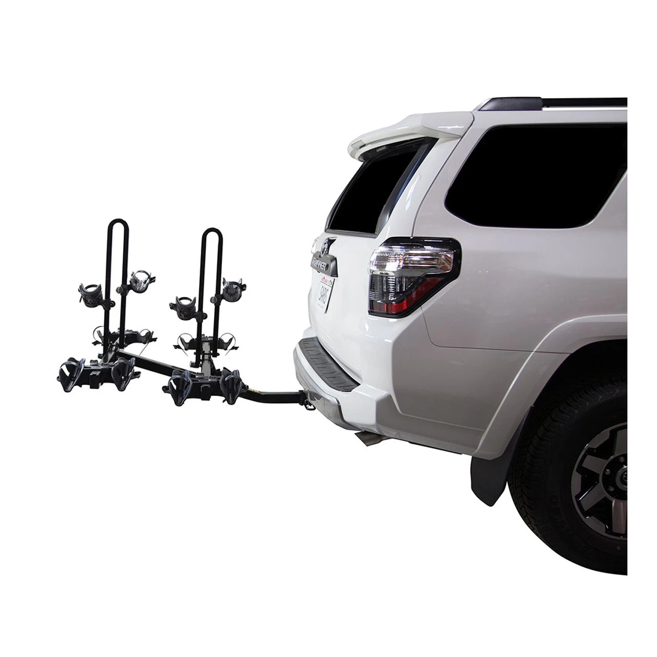 - Carries up to 4 bikes (60 lb/bike in trays closest to the vehicle; 35 lb/bike for second two trays).