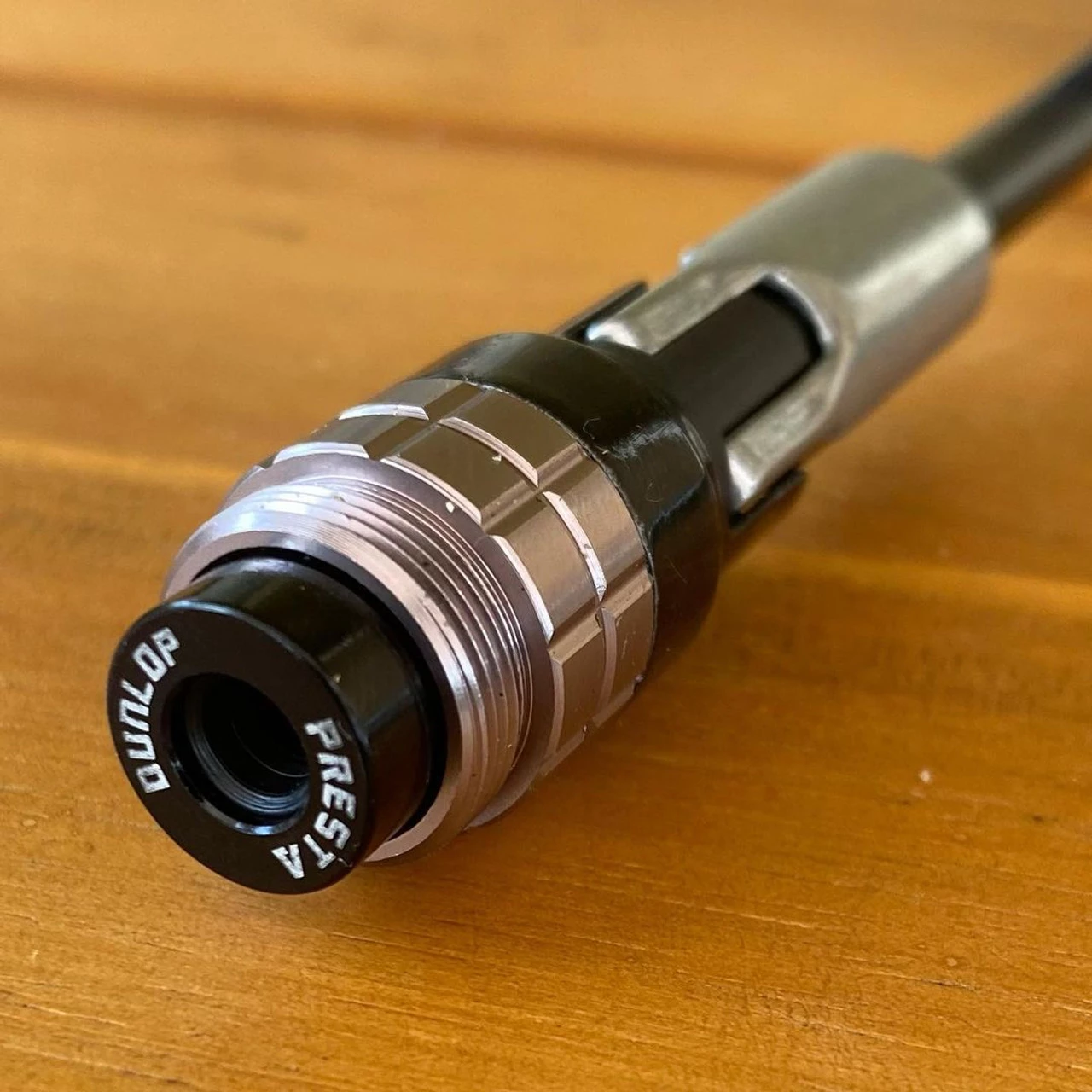– Long extractable filler hose with locking Presta/Shrader chuck