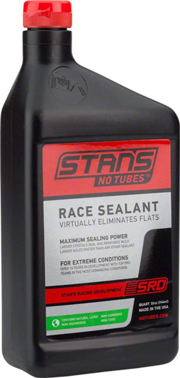 For nearly fifteen years Stan has been quietly formulating a special racing version of our legendary sealant for many of cycling’s most successful teams. Working with athletes who push themselves and their tubeless systems to the absolute limit, we’ve developed a proprietary sealant formula with close to twice the amount of our standard sealing crystals plus our special “XL” crystals capable of sealing even larger punctures. Stan’s Race Sealant’s combination of large and smaller sealing crystals interlock to form a lattice work that not only seals but strengthens and reinforces the area of the puncture, allowing for an entirely new level of sealing performance.